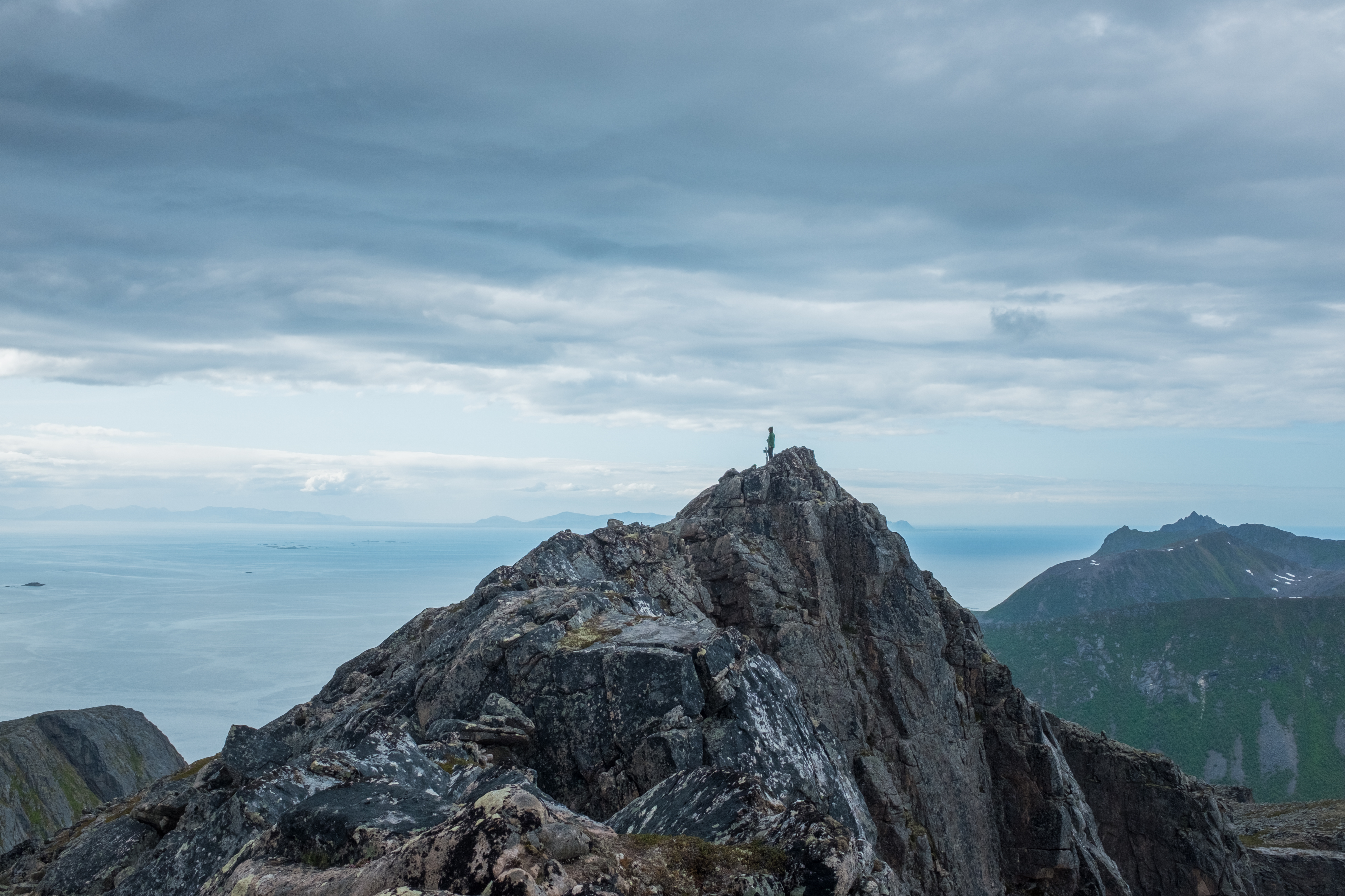 Straight from the fjord and up to the top at 935 masl. One of the tallest peaks of Senja. An incredible view of the pinnacles, ridgelines all over and the horizon out at sea. Not difficult, but a little longer.